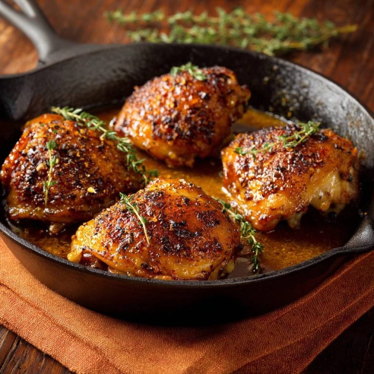 Knusprige Hähnchenschenkel mit Thymian in goldener Honig-Buttersauce – nie wieder trockenes Hähnchen!