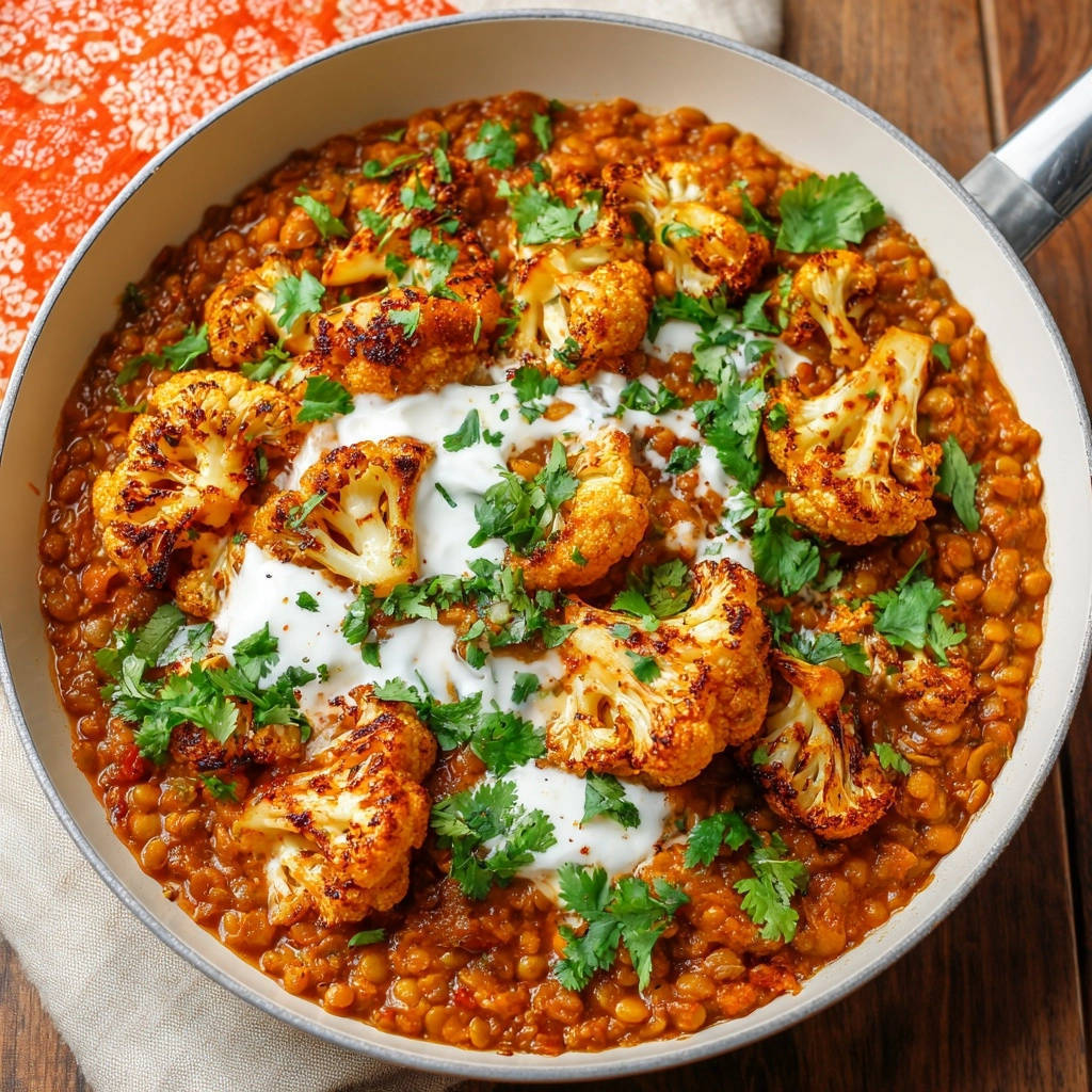 Das Linsen-Dal ist das cremige, aromatische Fundament, das perfekt mit dem knusprigen Blumenkohl harmoniert.