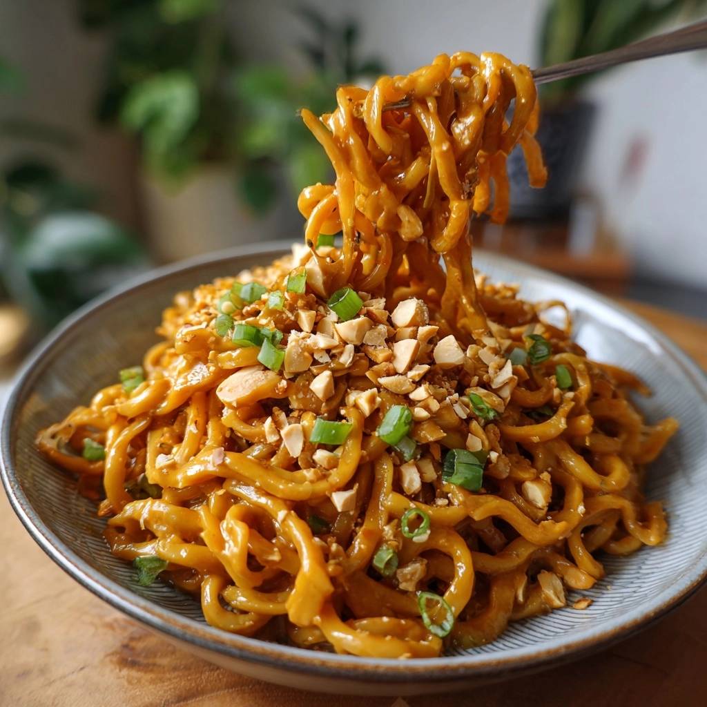 Stell dir vor, du beißt in cremige Erdnussnudeln, die perfekt knackig sind. Die Sauce umhüllt jede Nudel wie eine samtige Umarmung, mit einem Hauch von Limette und Ingwer, der auf der Zunge explodiert. Der Duft von gerösteten Erdnüssen steigt auf, und du denkst: Endlich mal Erdnussnudeln, die nicht matschig werden.