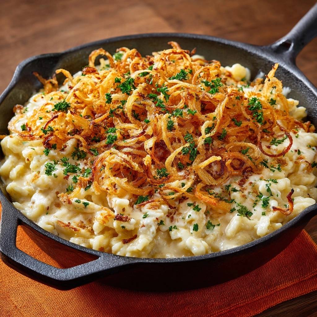 Warum cremige Käsemakkaroni mit knusprigen Zwiebeln unwiderstehlich sind