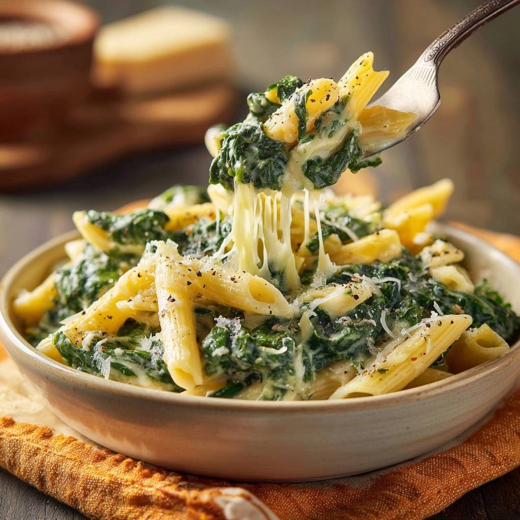 Stell dir vor, du öffnest den Deckel der Pfanne und ein warmer Duft von frischem Spinat steigt auf, cremig gebunden mit Sahne und Parmesan. Die erste Gabel Penne gleitet in den Mund: al dente Nudeln, die sich in sämiger Soße wälzen, ohne einen Hauch von Wasser. Jeder Bissen ist purer Genuss, intensiv grün und würzig.