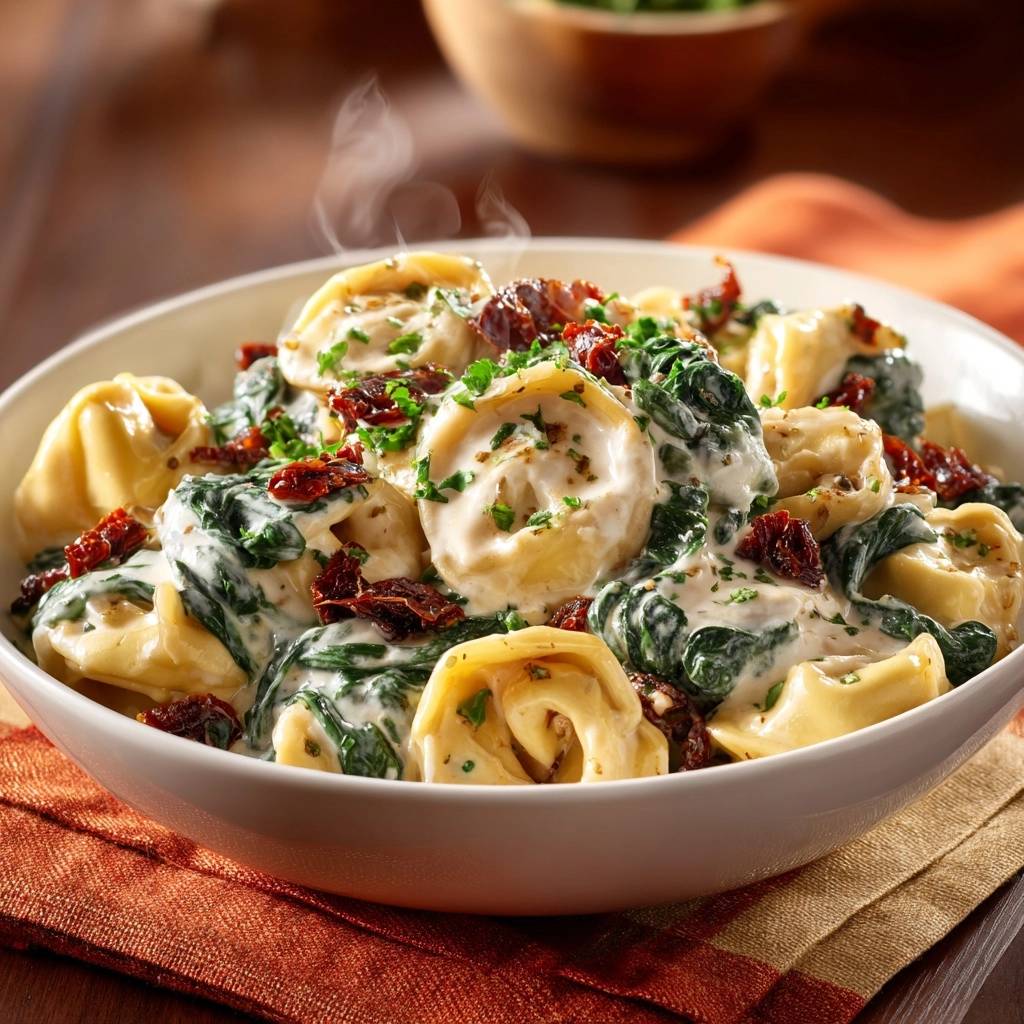 Ja, absolut. Tortellini mit Spinat- oder Käsefüllung passen super, garen ähnlich schnell. Bissfest kochen, dann vermengen. Die Füllung harmoniert toll mit der Soße, macht’s noch cremiger. Packungszeit beachten, meist 3 Minuten.