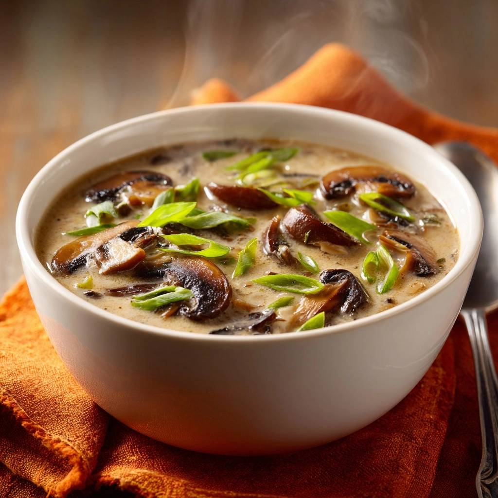- Verteile die Suppe auf Schalen und garniere sie mit den beiseitegelegten Röstpilzen sowie den frisch geschnittenen Frühlingszwiebeln. Durch die vorherige Röstung und die reduzierte Flüssigkeitsmenge erhältst du eine seidige, kräftige Konsistenz, die genau wie auf dem Bild perfekt gebunden bleibt.
