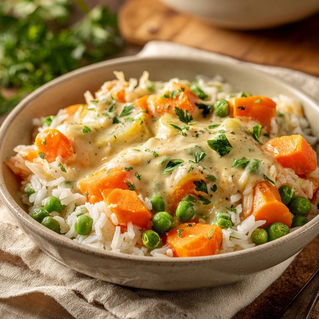 Perfekt für Familienabende oder wenn’s schnell gehen muss. In genau 25 Minuten steht das auf dem Tisch, warm und einladend. Probiers aus, du wirst staunen, wie einfach cremiger Karotten-Erbsen-Zucchini-Reis sein kann.