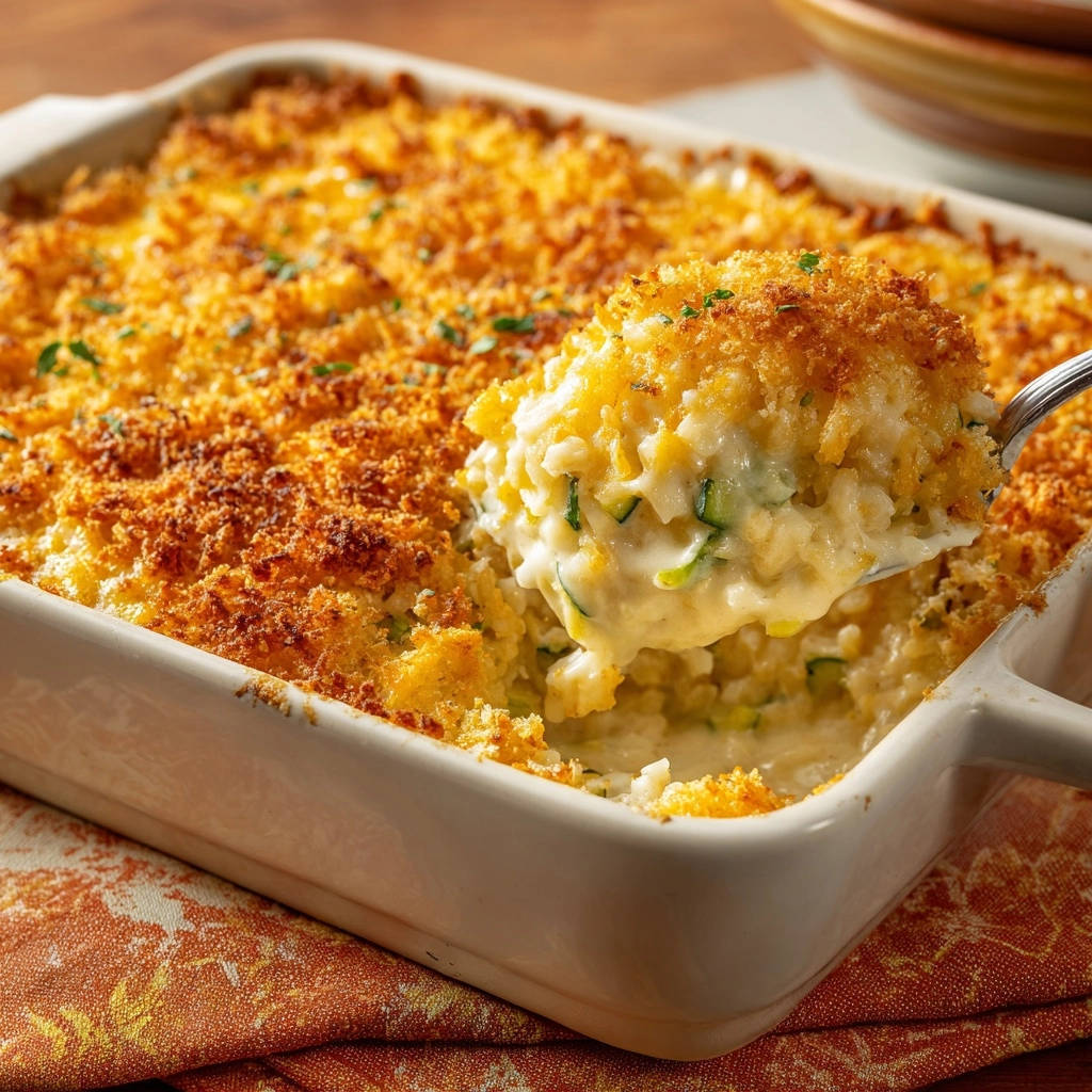 Cremiger Ofenreis-Gratin mit Zucchini