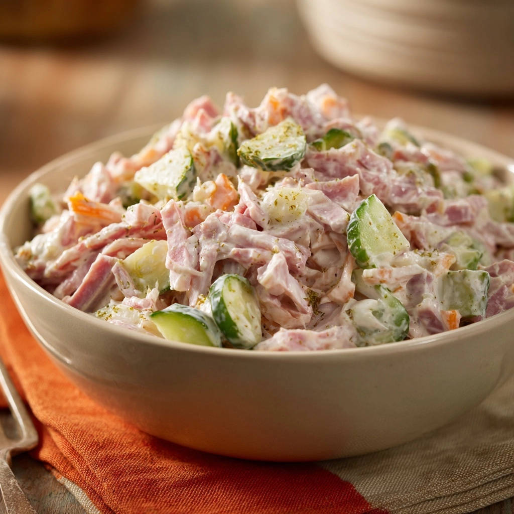 Schluss damit! Dieser Cremiger Schinken-Gemüse-Salat löst genau dieses Problem auf genial einfache Weise und wird garantiert Ihr neuer Favorit.