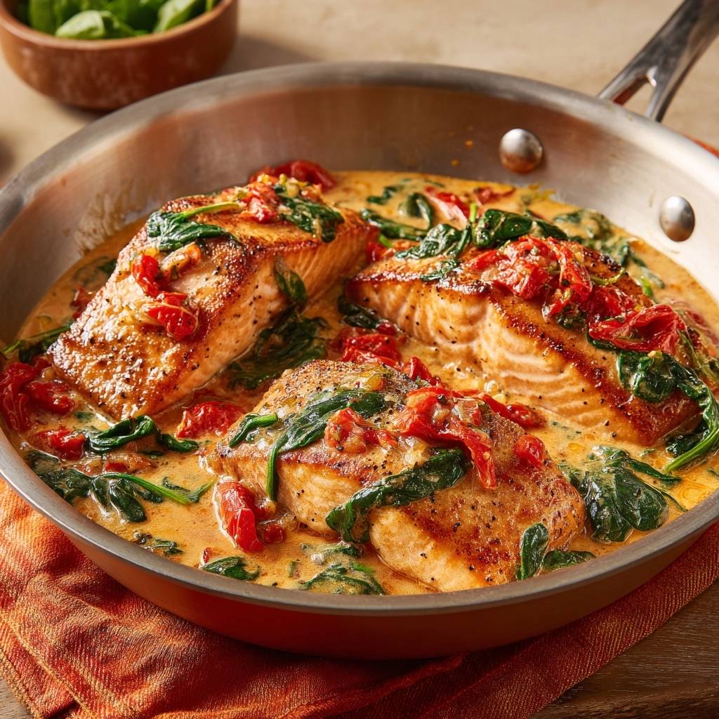 Warum hasse ich trockenen Lachs? Weil er die ganze Mahlzeit ruiniert. Hier wird er butterzart, die Tomaten geben Süße, Spinat Frische. Sahne bindet alles cremig. Probier’s, du wirst süchtig.