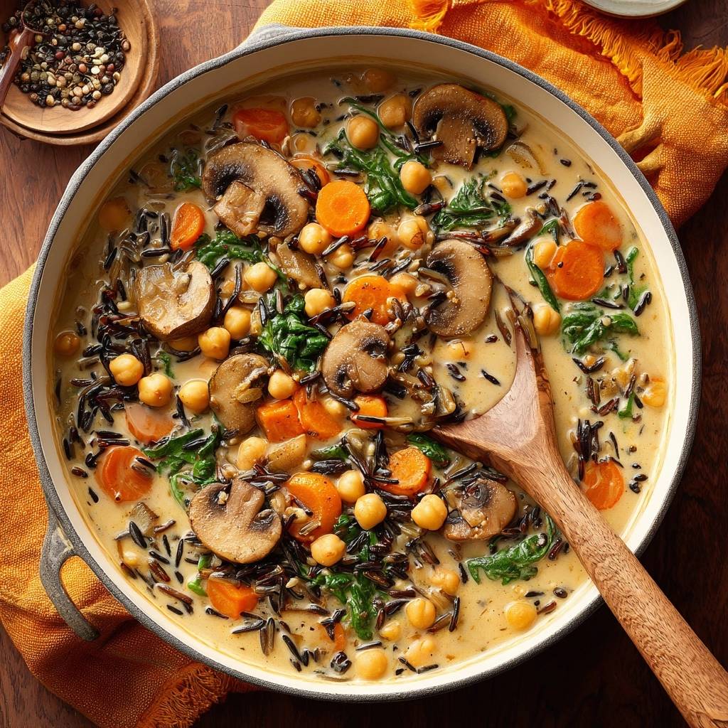 Cremiger Wildreis-Eintopf mit Kichererbsen und Pilzen (Keine wässrige Soße mehr)