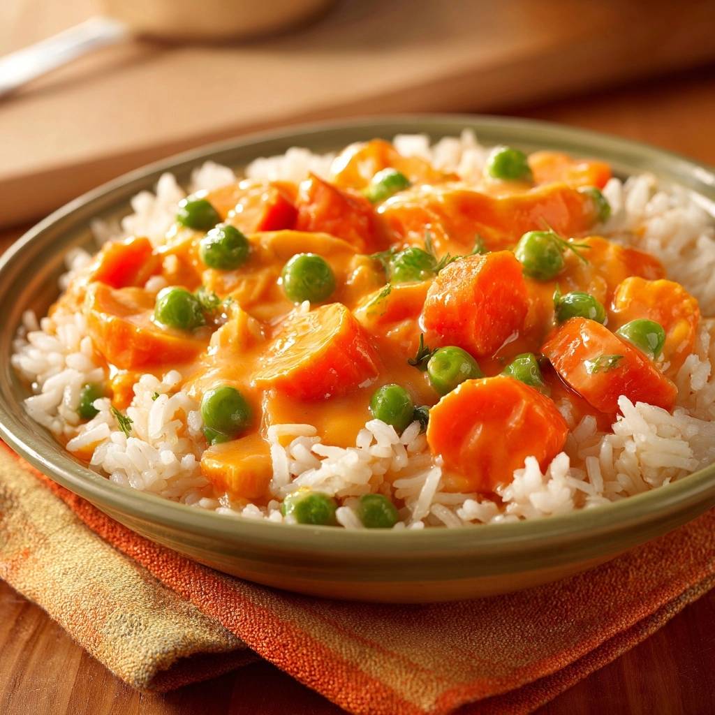 Cremiges Karotten-Erbsen-Curry mit Reis