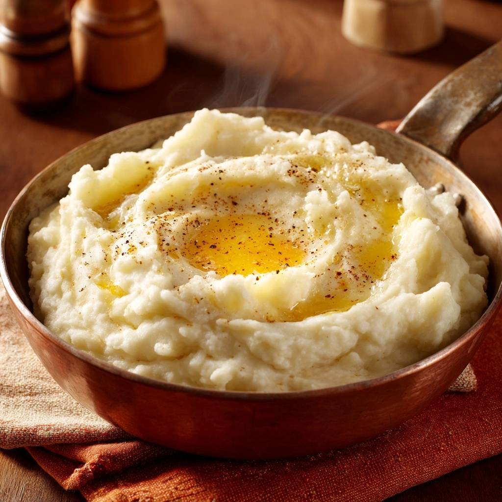 Das cremige Kartoffelpüree ist fluffig und buttrig, ohne Gummiigkeit. Im Vergleich zu klumpigem Püree fühlt es sich luxuriös an.