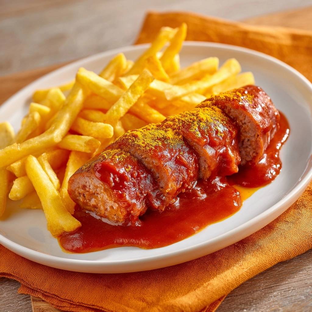 Der erste Biss in diese Currywurst mit Pommes lässt dich staunen. Saft spritzt heraus, die würzige Sauce klebt perfekt an der Wursthaut, und die Pommes knacken so herrlich knusprig. Du wirst nie wieder zum Imbiss rennen wollen.