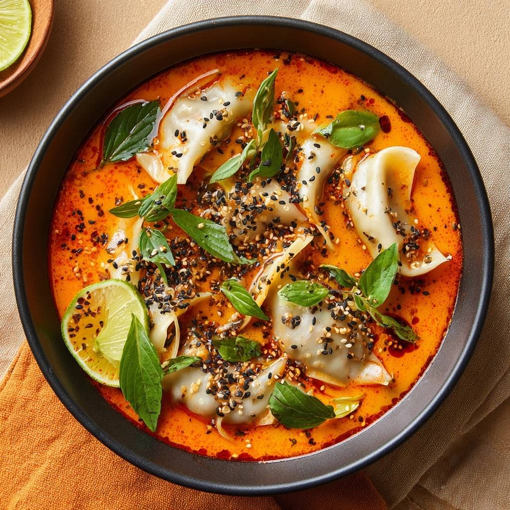 Stell dir vor, du löffelst die erste Portion Dumplings in cremiger roter Curry-Suppe. Der Dumpling platzt knackig auf, die Füllung ist saftig, und die Suppe umhüllt alles mit cremiger Wärme. Thai-Basilikum duftet frisch, Limette sorgt für den Kick. Ich hab das so oft vermasselt: Dumplings, die in der Suppe matschig werden und alles ruinieren.