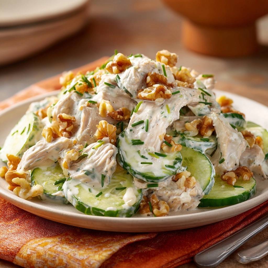 Frischer Hähnchen-Gurken-Salat mit Walnüssen (Keine wässrige Soße mehr)