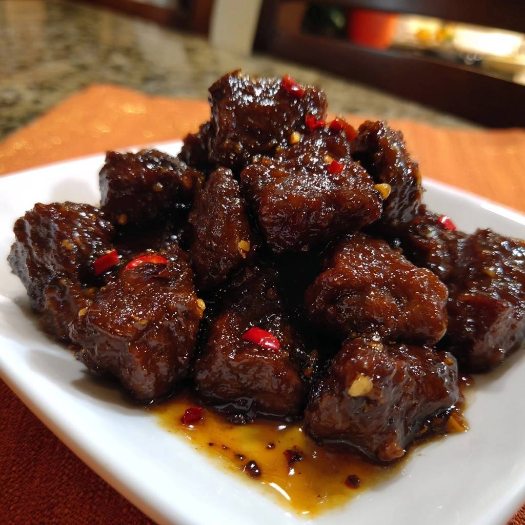 Stell dir vor, du nimmst die erste Gabel dieses glasierten Pfeffer-Rindfleischs in den Mund. Das Fleisch zergeht weich, die Sauce klebt glänzend daran, scharfe Chili mischt sich mit süßem Honig und knackigem Pfeffer. Du spürst sofort, warum das dein neues Lieblingsgericht wird.
