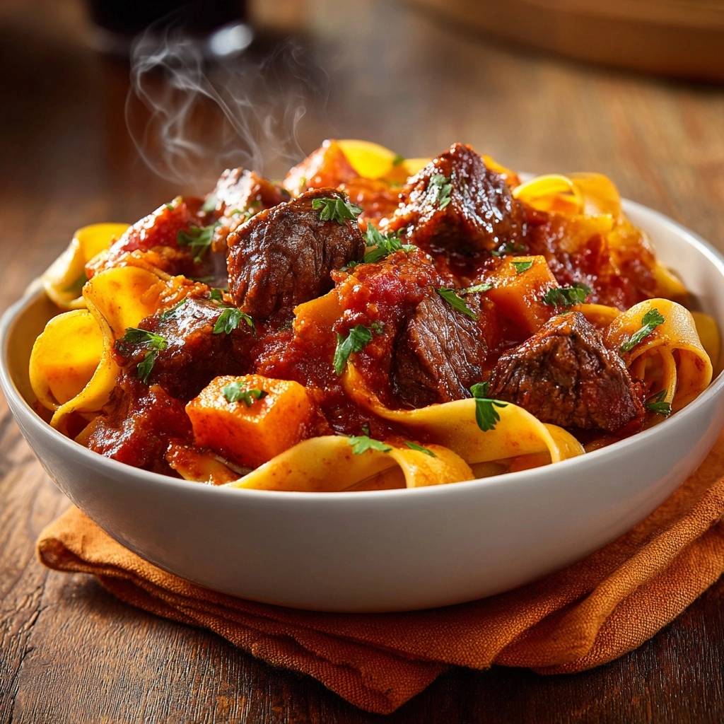 Herzhaftes Rindergulasch mit Pappardelle