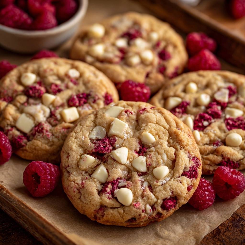 - Schlüsseltrick: Himbeeren 30 Minuten tiefkühlen, damit sie Form halten und keinen Saft abgeben. Teig 30 Minuten kühlen für hohe Cookies.