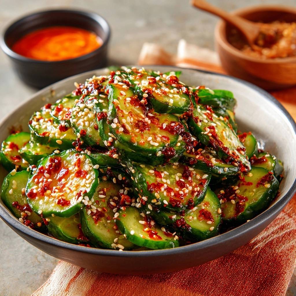 Der erste Biss knallt nur so. Knackig beißt die Gurke durch, dann explodiert die scharfe Gochujang mit ihrem tiefen Umami, umhüllt von sesamiger Cremigkeit. Du spürst die Frische sofort, als ob der Sommer in deinem Mund erwacht. Ich erinnere mich an einen Markt in Seoul, wo Straßenverkäufer das Zeug in Sekunden zauberten – dampfend heiße Luft, und dieser Salat war der Rettungsanker.