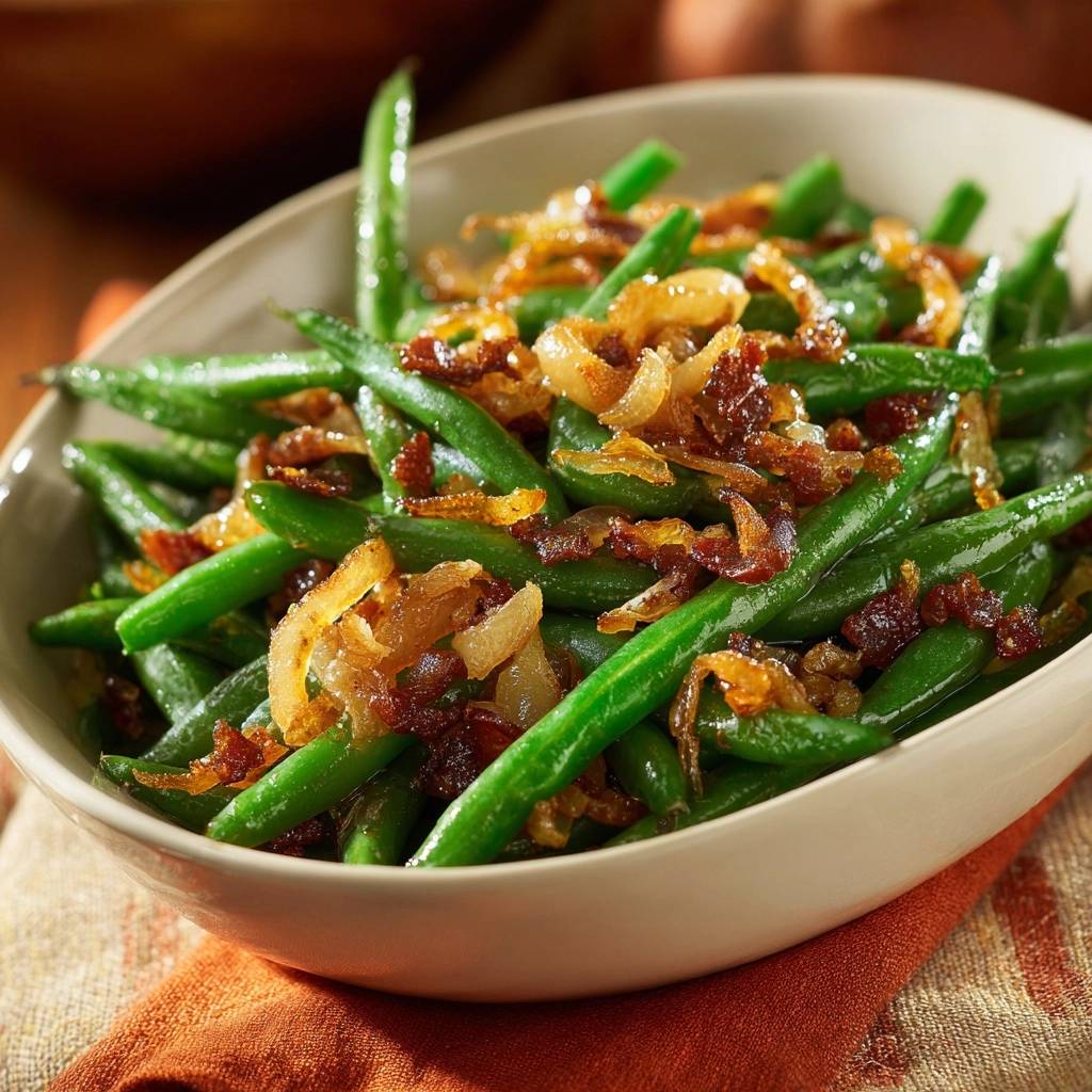 Knackige Grüne Bohnen mit Speck und Karamellzwiebeln (Nie wieder matschige Bohnen!)