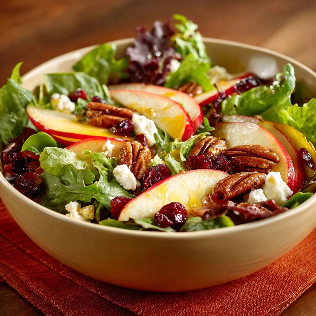 Stell dir vor, du beißt in den ersten Apfelstreifen rein. Knackig, saftig, mit diesem frischen Biss, der sofort Lust auf mehr macht. Der Duft von gerösteten Pekannüssen mischt sich mit der leichten Säure der Cranberries und dem cremigen Feta. Ich hab das so oft hingekriegt, dass braune Äpfel mein Salat-Fiasko waren. Nach ein paar missglückten Versuchen hab ich den Trick gefunden: Das saure Dressing direkt auf die Apfelscheiben. Kein Warten, kein Zitronensaft-Gedöns, einfach perfekt weiß und frisch.