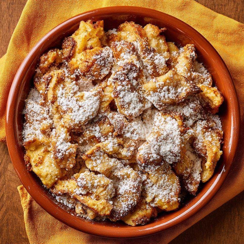 Heiß mit Puderzucker bestäuben. Direkt essen, solang knusprig.