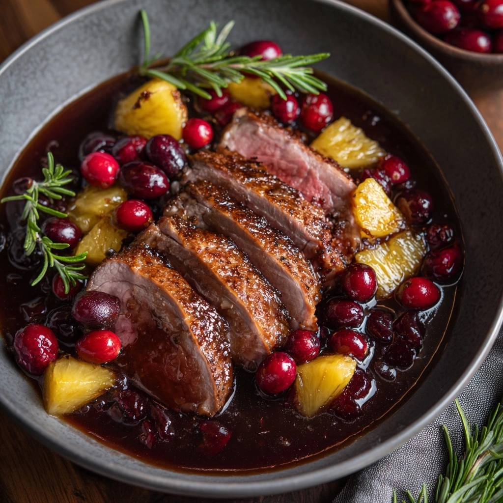 Knusprige Entenbrust mit Cranberry-Ananas-Soße