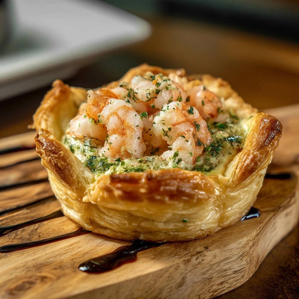 Das Geheimnis liegt im Kontrast der Texturen. Der luftige, buttrige Blätterteig bildet den Rahmen für die saftigen Garnelen und die schmelzende Crème fraîche.