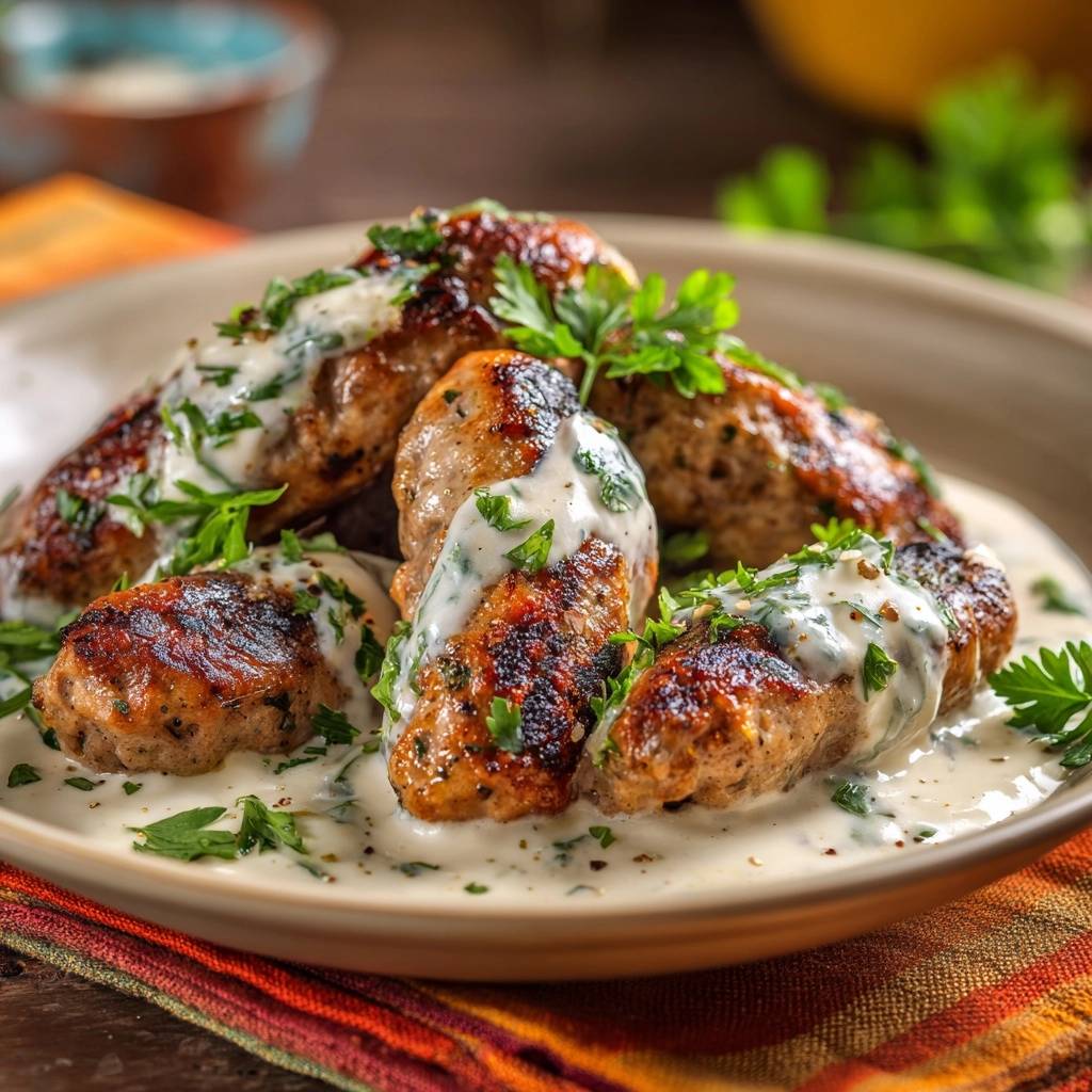 Knusprige Hähnchen-Kofta mit cremiger Kräutersoße