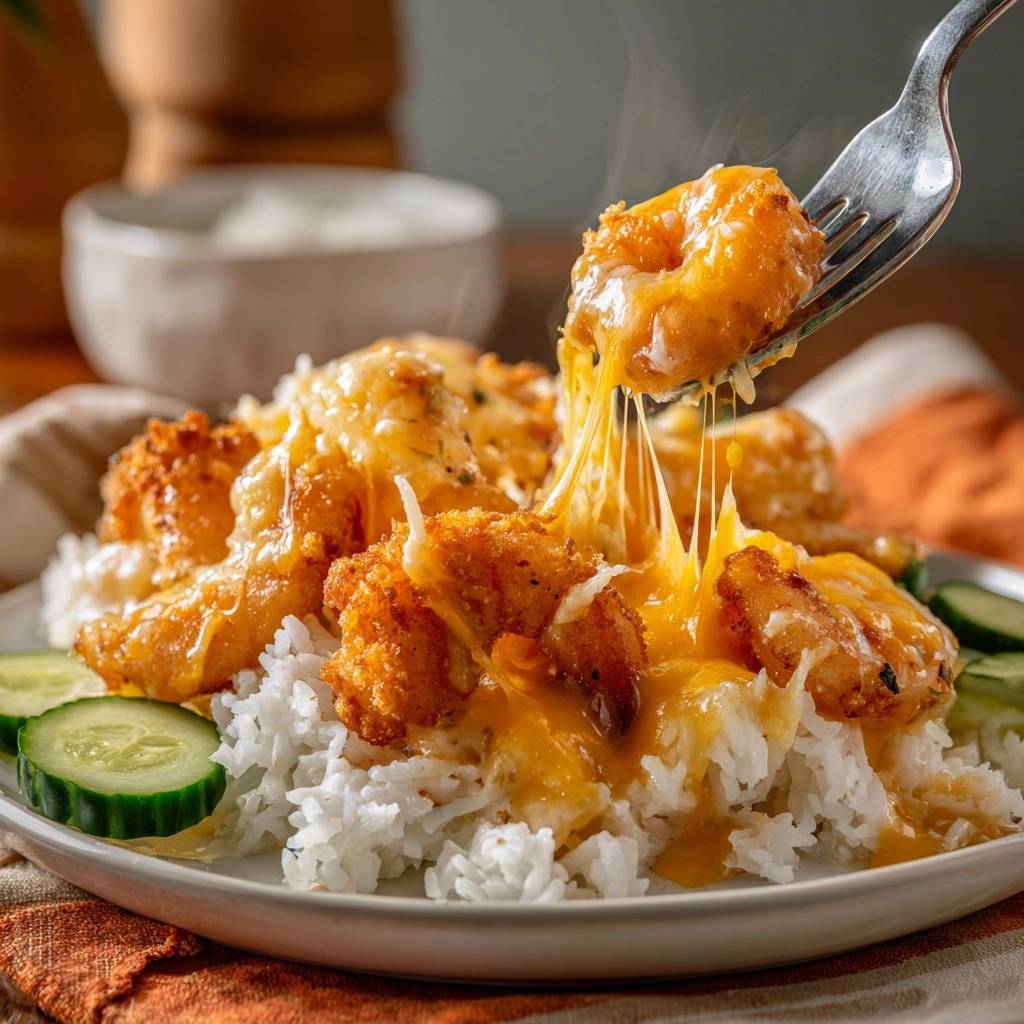 Du kochst Jasminreis als Basis, der duftet himmlisch. Die Garnelen werden goldbraun frittiert, dann Käse drüber und kurz unter den Grill. Ergebnis: Ultra-knusprig außen, schmelzig innen. Perfekt für 2 Portionen in unter 30 Minuten.
