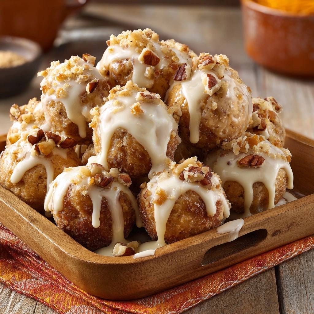 - Für die Glasur Puderzucker, Frischkäse, Milch und Vanille glatt rühren. Bällchen großzügig glasieren, mit restlichen Pekannüssen bestreuen und servieren. Perfekt fluffig und textur-sicher!