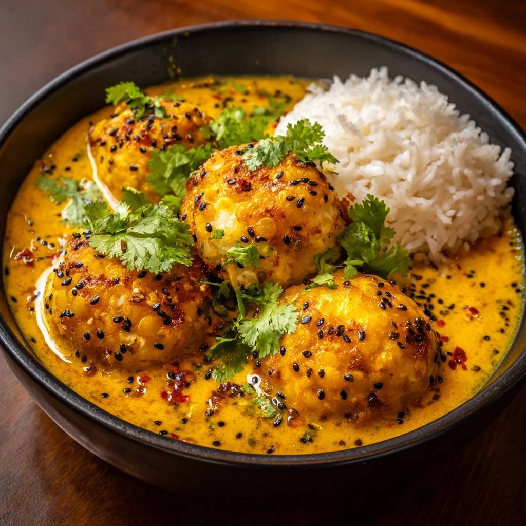 Stell dir vor, du beißt in ein Sesam-Paneer-Bällchen, das außen knusprig knackt und innen weich schmilzt, während die cremige goldene Curry-Soße drumherum nur lockt, aber nicht durchdringt. Ich hab das nach unzähligen Abenden in der Küche entwickelt, wo meine ersten Paneer-Bällchen im Curry regelrecht zerfielen und matschi g wurden. Du kennst das: Indische Abende mit Freunden, wo alles perfekt sein soll, aber die Bällchen saugen die Soße auf und verlieren jeden Biss.