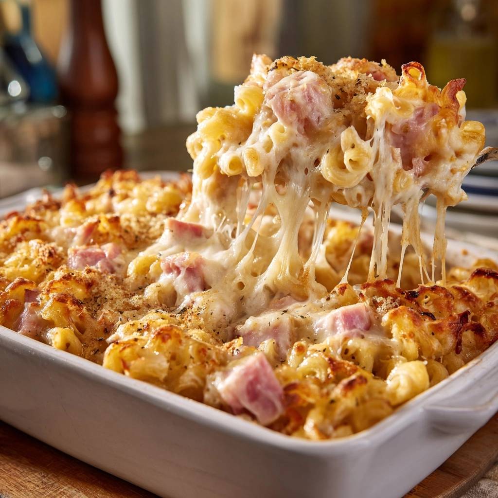 Der Duft zieht durch die Küche, käsig und buttrig, mit einem Hauch von Muskat. Du schaufelst die erste Gabel in den Mund: außen knusprig goldbraun, innen cremig und saftig, die Schinkenwürfel bieten Biss. Dieser knusprige Mac and Cheese mit Schinken ist pure Wohlfühlkost, die bei Kindern und Erwachsenen gleichermaßen punktet.