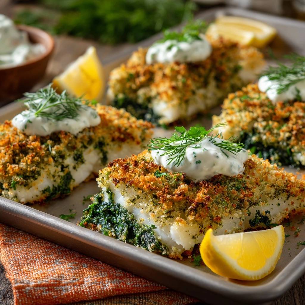Knuspriger Spinat-Fisch mit Dill-Joghurt – Rezept