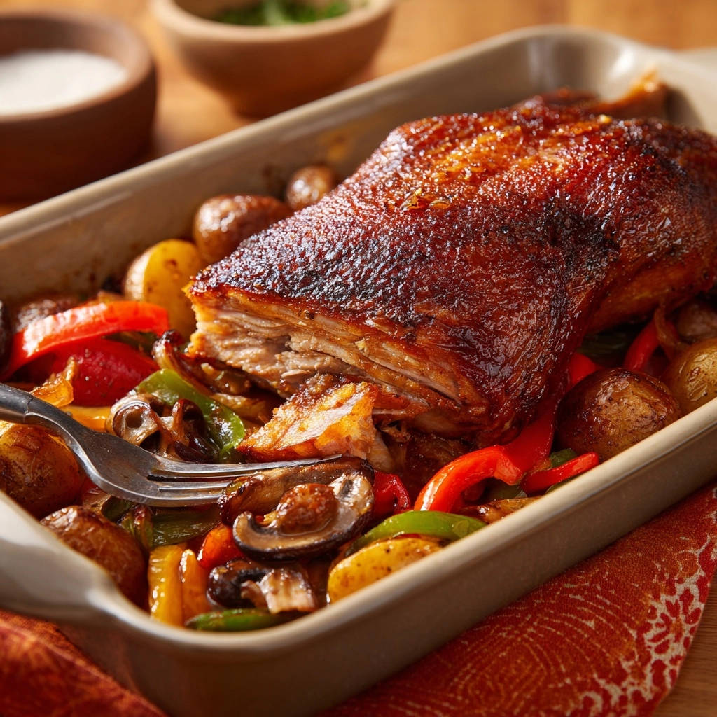 Besonders die Kartoffeln nehmen die köstlichen Bratensäfte auf und werden außen knusprig, innen zart. Die Paprika sorgt für Farbtupfer und eine leicht herbe Süße.