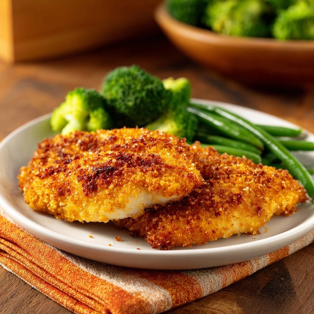 Knuspriges Paniertes Hähnchen mit Brokkoli und Bohnen