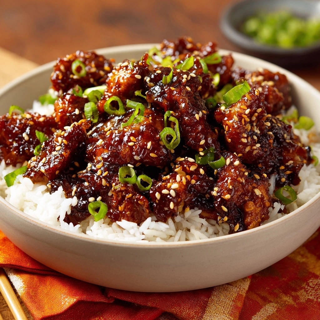- Servieren: Serviert das glänzende Sesam-Hähnchen sofort auf frisch gekochtem Reis. Bestreut es großzügig mit gerösteten Sesamkörnern und frischen Frühlingszwiebelringen. Genießt euer dauerhaft knuspriges Festmahl!