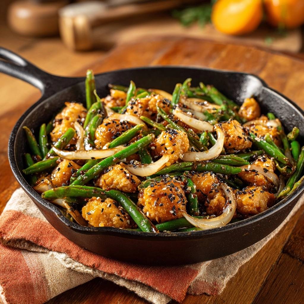 Ich hab das hundertmal getestet. Matschige Panade? Vergiss es. Früher ist mir das bei jedem Wok-Gericht passiert, bis ich diese Methode perfektioniert hab. Die Bohnen bleiben knackig, die Zwiebeln süß, und die Sauce glasieret alles glänzend, ohne die Kruste weich zu machen.