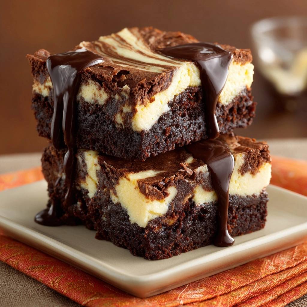 Stell dir vor, du beißt in diesen Marmor-Cheesecake-Brownie rein. Die Schokolade schmilzt weich auf der Zunge, der Käse-Swirl cremig und luftig daneben. Perfekter Kontrast, traumhafter Marble-Effekt, der oben bleibt.