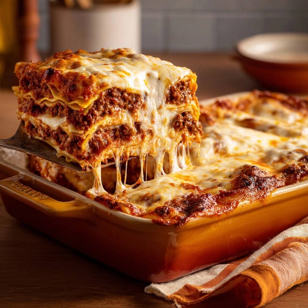 Stell dir vor, du nimmst die erste Gabel der perfekten Hackfleisch-Lasagne. Der Käse zieht Fäden, die Schichten halten zusammen, und der Geschmack explodiert: herzhaftes Hackfleisch, würzige Tomatensoße, cremiger Mozzarella. Kein Schwimmen in Flüssigkeit, kein Verrutschen beim Schneiden.
