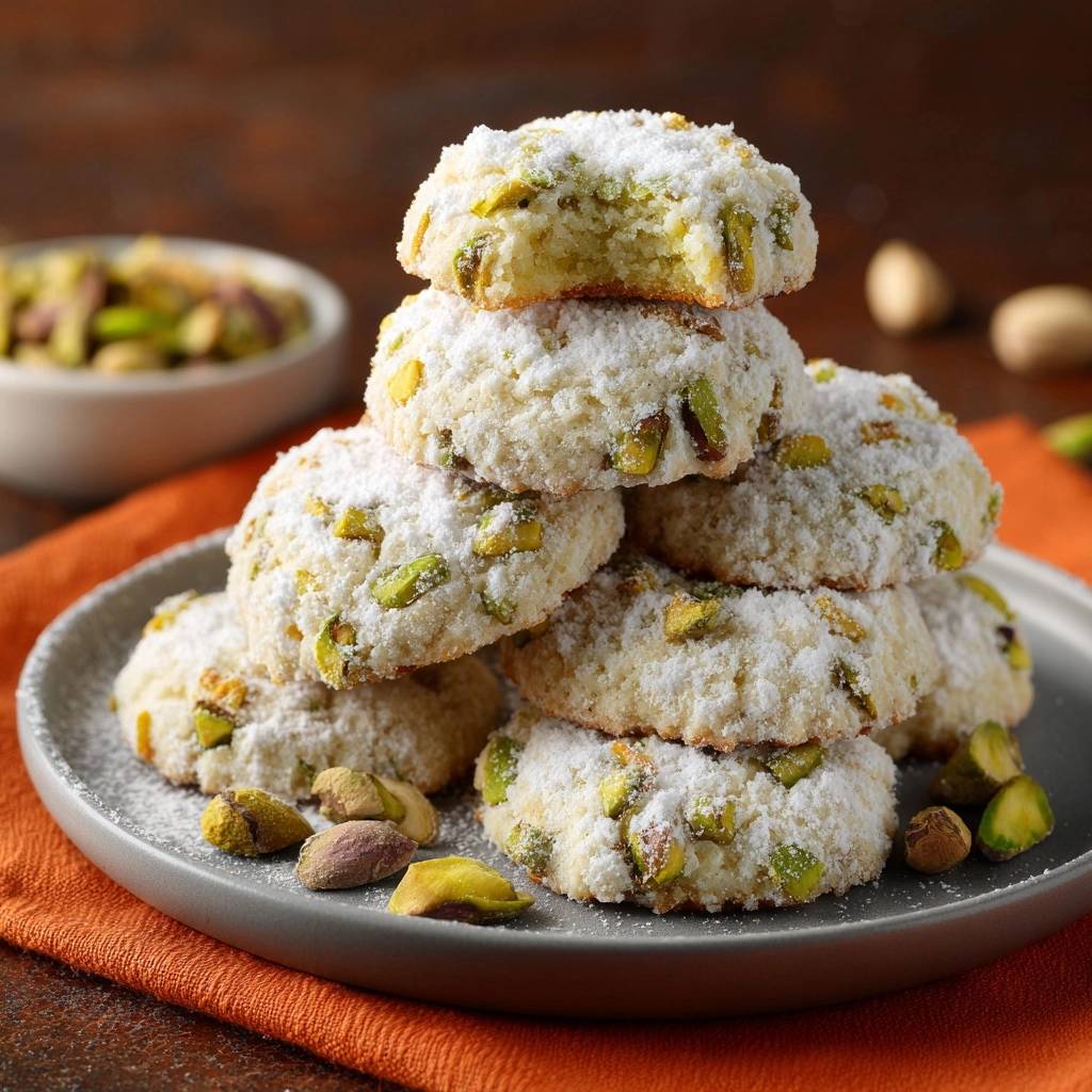 Stell dir vor, du nimmst eine dieser kleinen grünen Kugeln in die Hand. Sie fühlt sich kühl und pudrig an, dann der erste Biss: mürb, pistaziig, schmilzt auf der Zunge. Der Duft der Nüsse umhüllt dich, und nichts zerbröselt.
