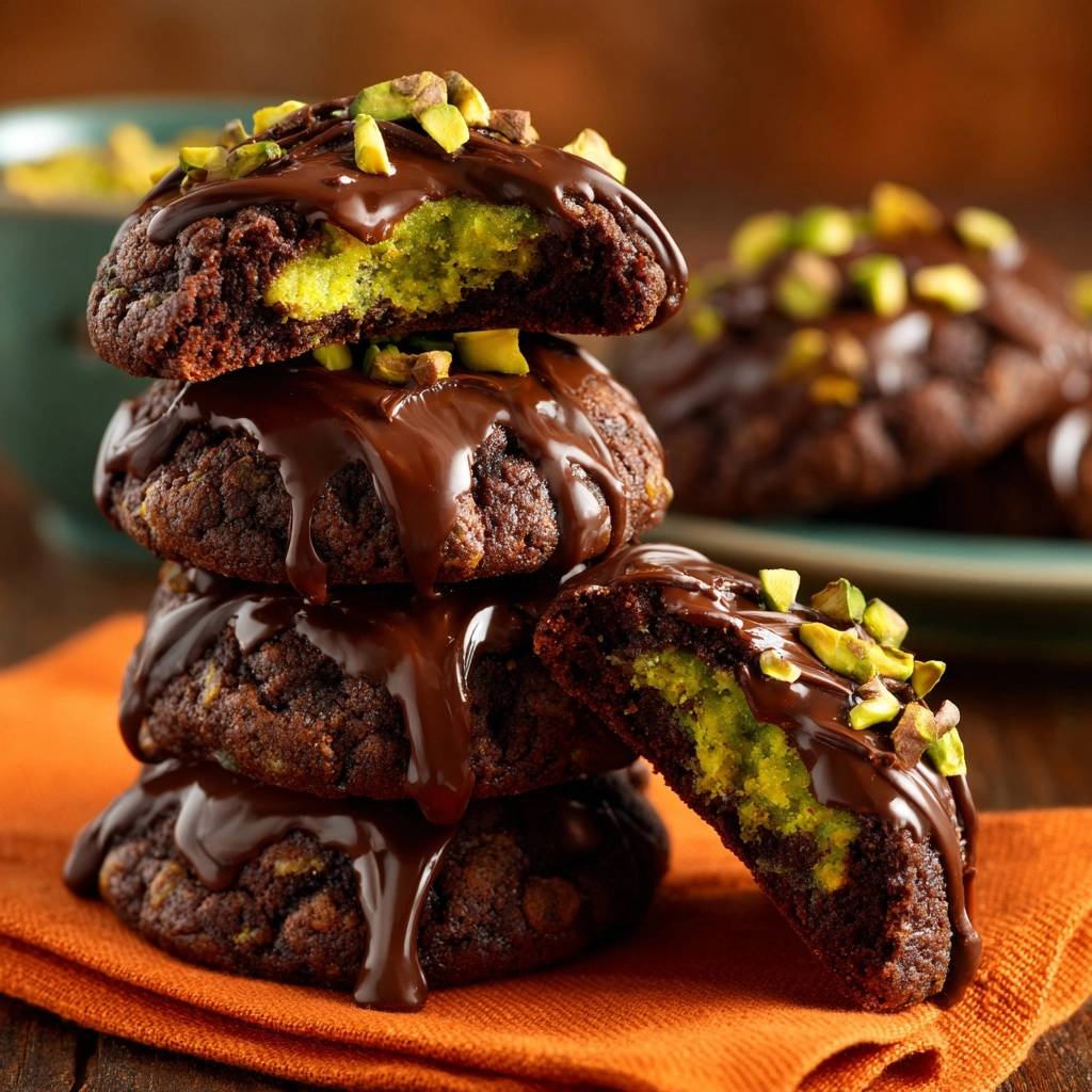 Stell dir vor, du beißt in einen Pistazien-Schoko-Cookie, der innen saftig-chewy ist, mit cremiger grüner Pistazienfüllung, die über die Zunge schmilzt, und außen knusprig von dunkler Schokolade umhüllt. Der Nussduft steigt auf, vermischt mit Kakao, und alles bleibt schön dick, ohne platt zu fallen. Genau so schmecken diese Pistazien-Schoko-Cookies (Nie wieder flache Cookies!), mein Retter nach unzähligen Backpleiten.