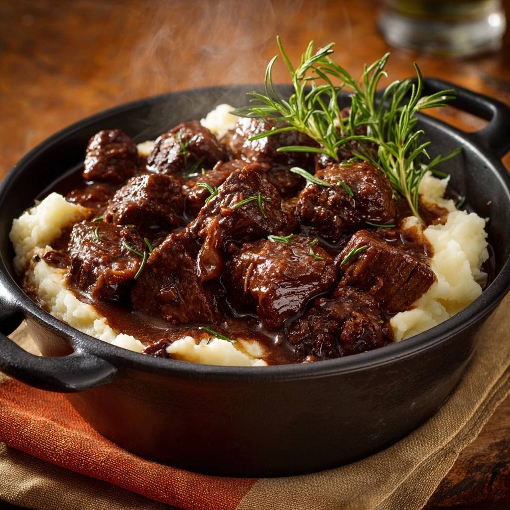 Seitdem ist Rindfleischragout mit Kartoffelbrei bei uns Kult. Das Fleisch schmilzt auf der Zunge, die Soße duftet nach Rosmarin und umhüllt cremigen Kartoffelbrei. Der erste Bissen? Pure Wärme, saftig und aromatisch. Kein Vergleich zu trockenen Missgeschicken.