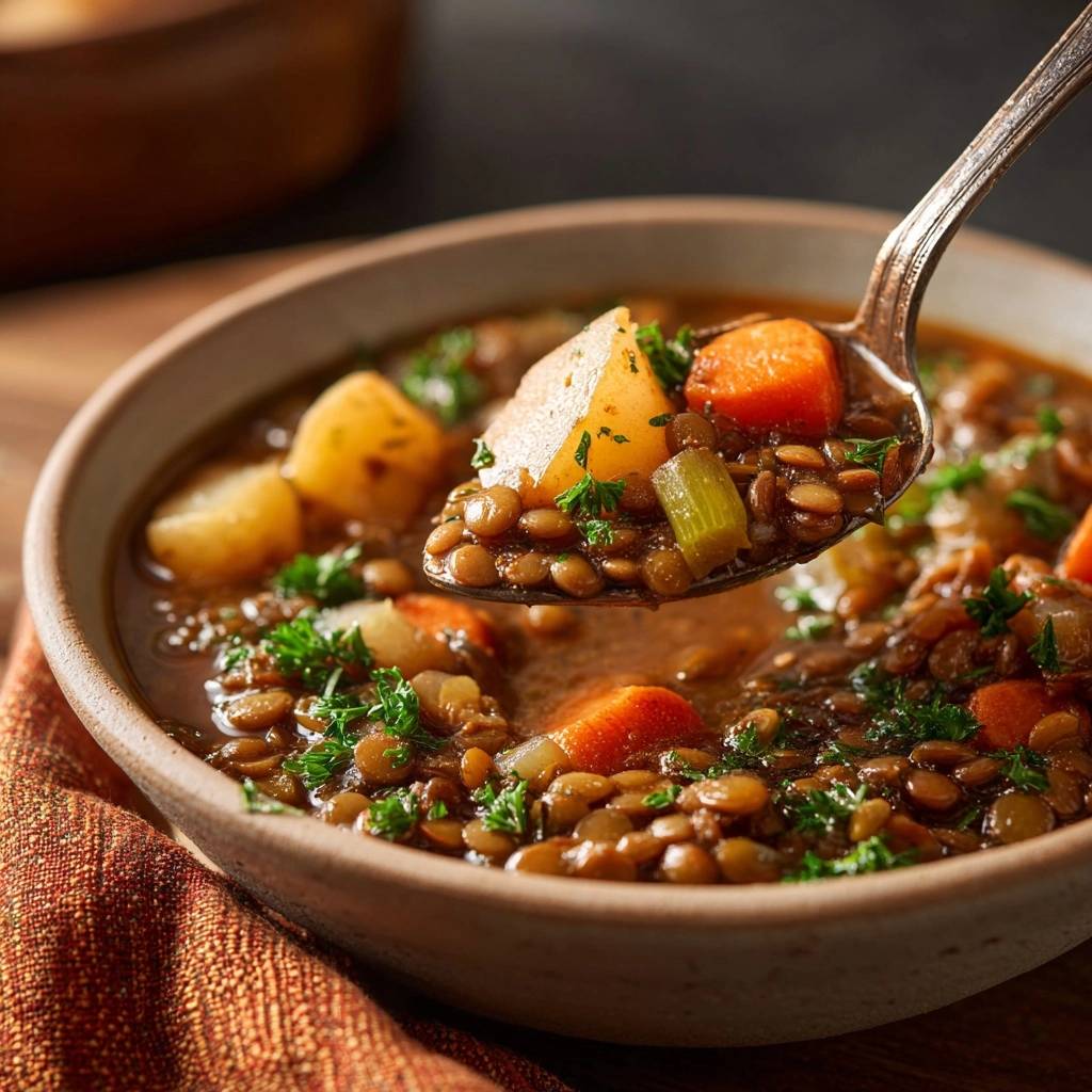 Stell dir vor, du löffelst den ersten Bissen dieses rustikalen Linseneintopfs mit Kartoffeln und Karotten. Die Linsen sind bissfest, das Gemüse knackig, und alles umhüllt eine cremige Brühe mit herzhaftem Aroma. Ich hab das Gericht hundertmal gekocht und verbessert, bis es perfekt war.