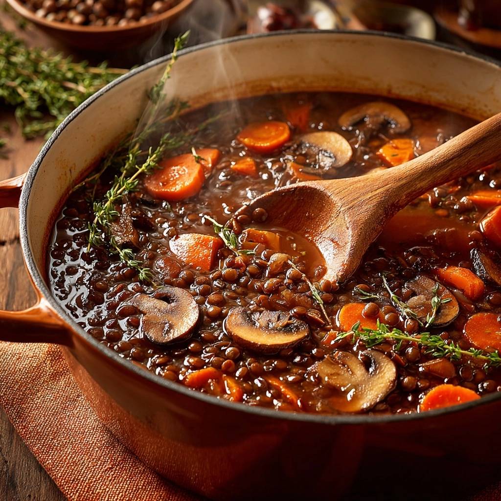 Stell dir vor, du löffelst den ersten Bissen dieses Linseneintopfs. Die Linsen haben Biss, die Karotten knackig, Pilze saftig und alles in einer cremigen Brühe. Kein Matsch mehr, der dich je wieder nervt.