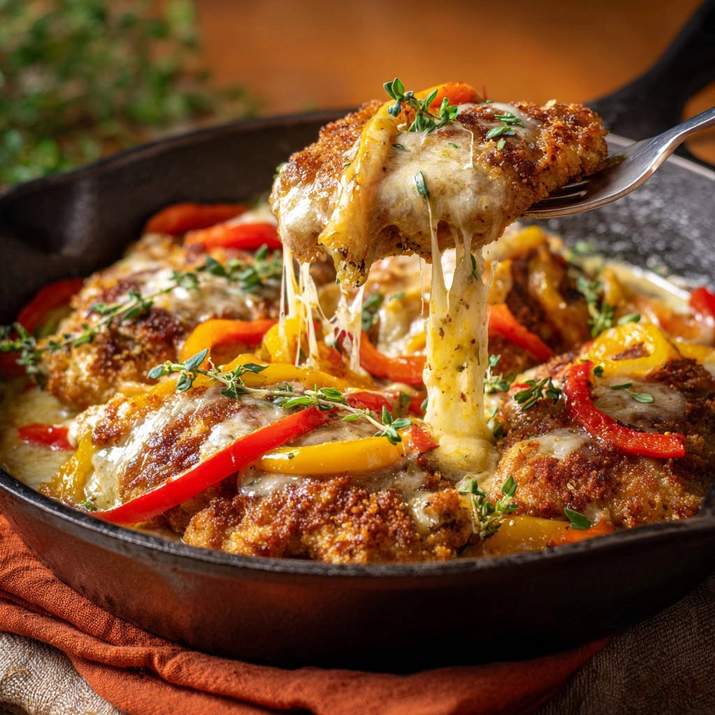 Saftige Hähnchenschnitzel mit Paprika-Käse-Decke: Perfekt knusprig & unglaublich zart