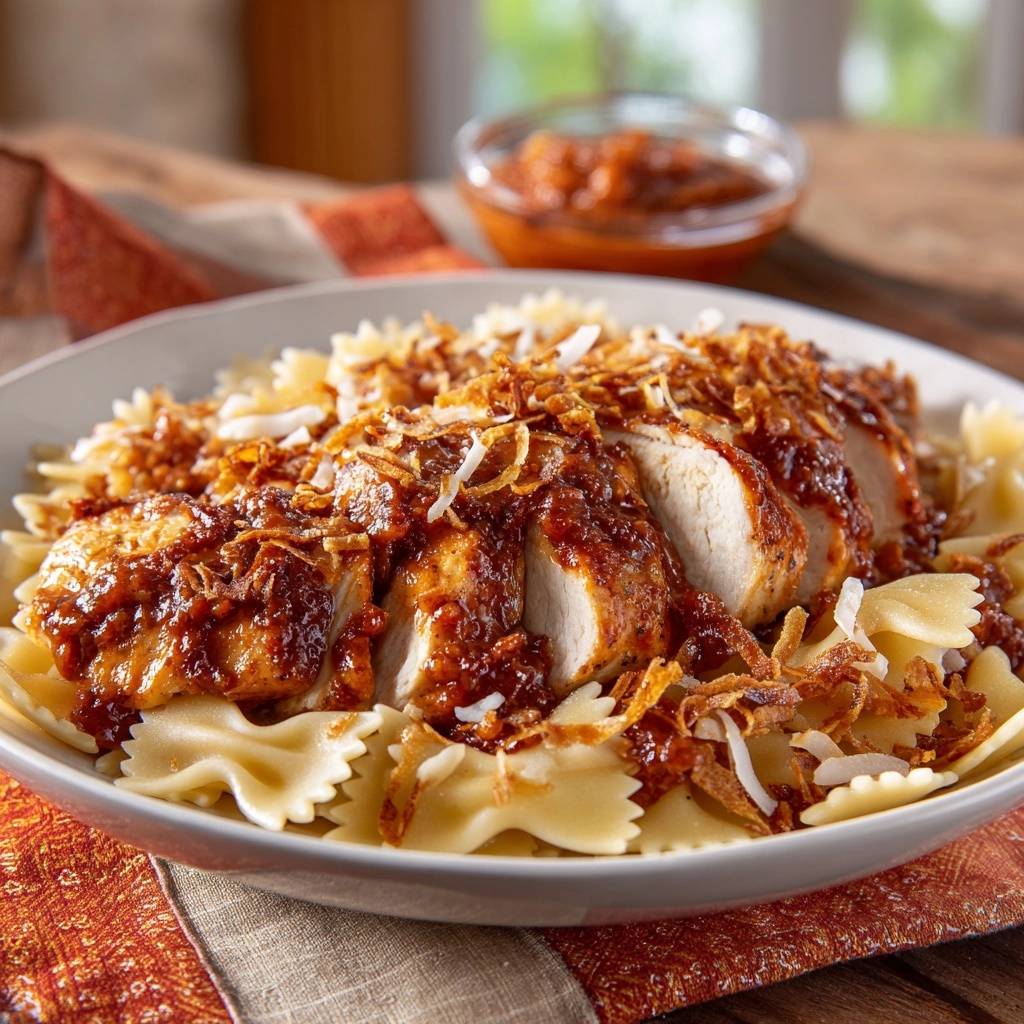 Saftiges Hähnchen-Farfalle mit Kokos-Knusper