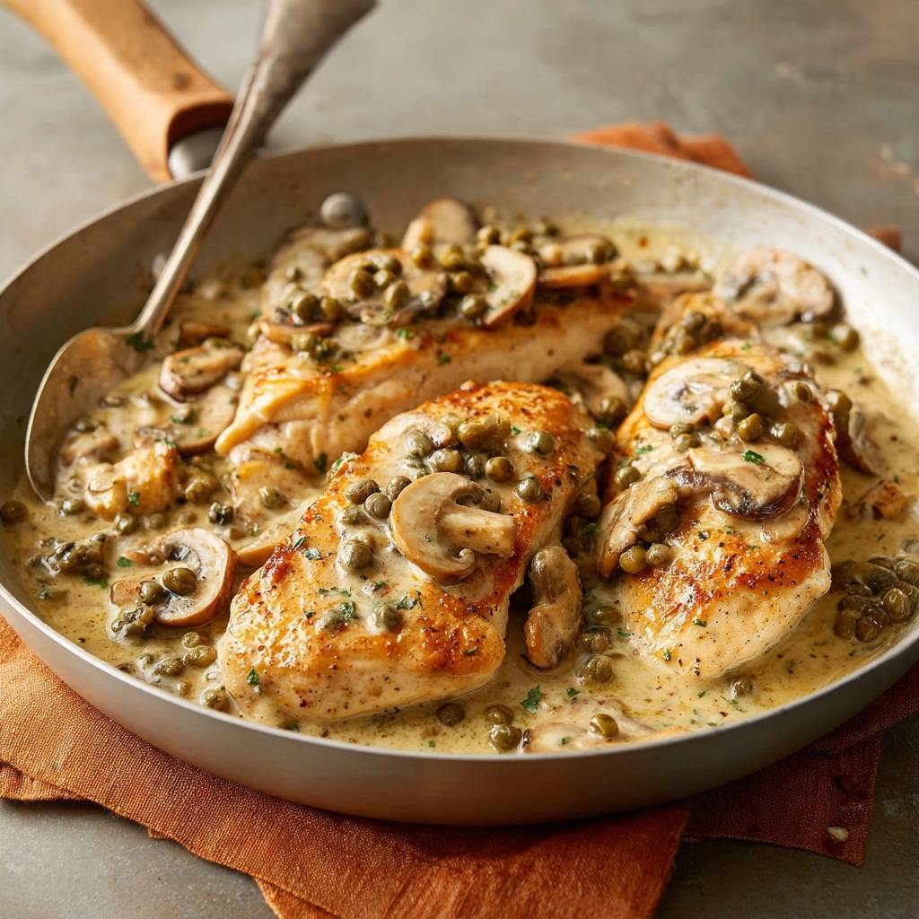 Saftiges Hähnchen mit Pilzen und Kapern – Rezept