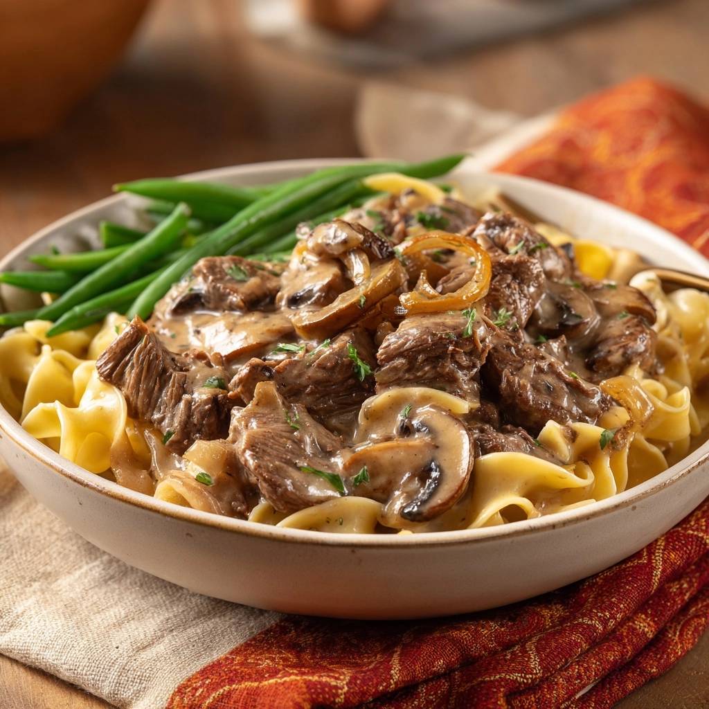 Low-Carb: Weniger Nudeln, mehr Bohnen. Keto: Sahne hoch, Nudeln weglassen. Hochprotein durch Rind. Pro Portion 38 g Protein, sättigend und muskelaufbauend.