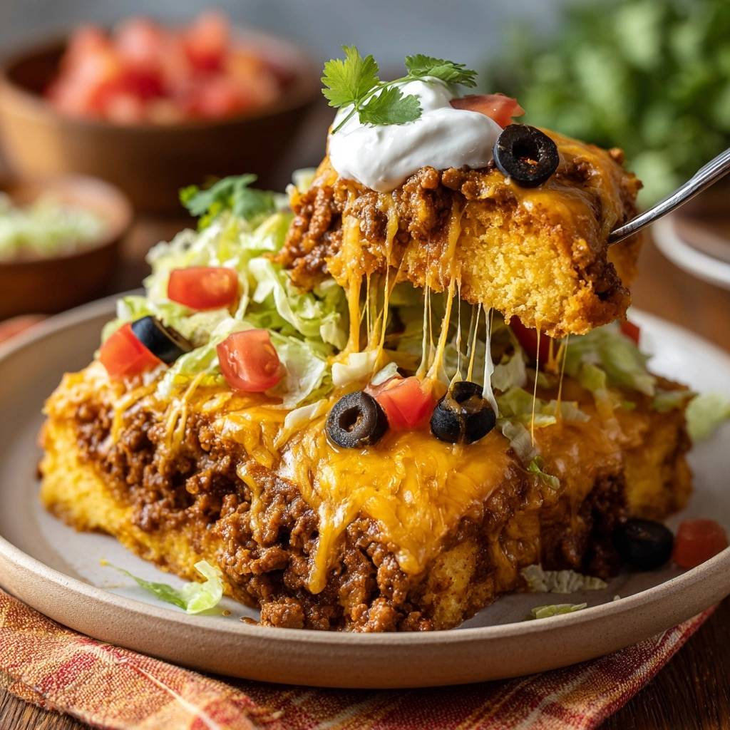 Stell dir vor, du schneidest den ersten Bissen ab: Die Maisbrot-Kruste knackt goldbraun, darunter fluffig und saftig, getoppt mit schmelzendem Käse und würzigem Hackfleisch. Der Duft von Kreuzkümmel und Paprika zieht durch die Küche, und dein Mund füllt sich mit diesem perfekten Mix aus Taco-Kick und comfort food. Ich hab das Gericht so oft probiert, bis es rundum klappt.