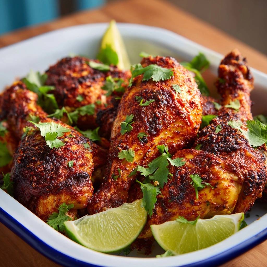 Stell dir vor, du ziehst ein Blech aus dem Ofen und der Duft von gerösteter Paprika, Kreuzkümmel und frischer Limette schlägt dir entgegen. Die Haut der Hähnchenkeulen ist so dunkel und knusprig, dass sie beim ersten Berühren mit der Gabel leise knackt.